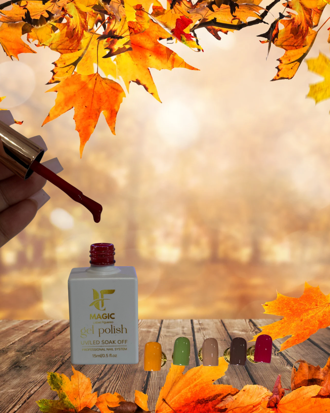 Una línea exclusiva de 5 hermosos colores en Gel Polish, inspirados en la magia y elegancia del otoño. Cada tono refleja la calidez de la temporada, desde los matices más suaves hasta los más intensos, perfectos para lucir uñas espectaculares. 💅🏼🍁